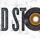 A close-up of a lavender vinyl record on a turntable in a bar, with people sitting at the bar and a crown-shaped light sign in the background.