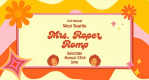 Break out your brightest caftans, chunky jewelry, and—of course—that iconic red curly wig, because West Seattle is about to get fabulous! The Roper Romp is happening this Saturday, August 23rd, and the Junction will be alive with color, laughter, and community spirit. Inspired by the nationwide Mrs. Roper movement and brought to life by local resident Kiersten Larson, the Romp is all about celebrating joy, self-expression, and togetherness. The evening kicks off at 5:30 PM…
