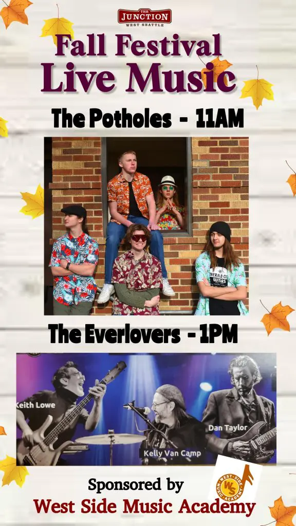 If competition is not your thing, come on down to enjoy the music of the Potholes and the Everlovers, sponsored and produced by West Side Music Academy, do some shopping, taste some chili, and bask in the glory of Fall!