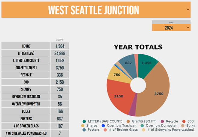 They conduct litter abatement, sweeping, removing feces and needles, and removal of graffiti below 8 ft.