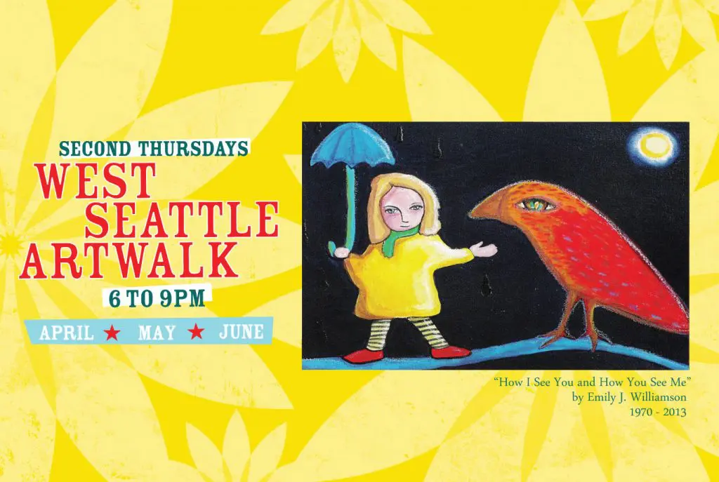 With a spring in our step we delve into another round of the West Seattle Art Walk that’s happening this Thursday, April 11th, from 6pm – 9pm.