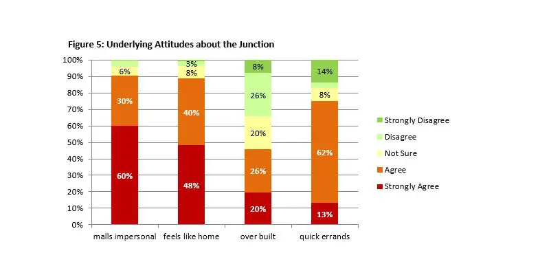 • 90% agreed that “Malls are too impersonal; I love the feel of the Junction”- 60% agreed strongly.